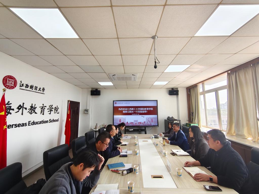 为切实提升我校来华留学生管理工作水平,助推学校国际化办学进程,2026年3月12日,国际教育学院院长程修云一行6人,先后赴江西财经大学海外教育学院、南昌大学国际教育学院开展专题调研,交流学习来华留学生管理和来华留学生高等教育质量认证有关工作。
